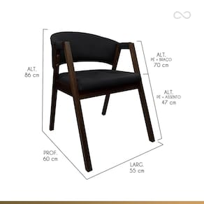 A Cadeira Poltrona Ravena é a escolha ideal para quem busca conforto e estilo para sua casa. Com estrutura em madeira eucalipto ecologicamente correta, esta poltrona é resistente e durável, para te acompanhar por muitos anos. O acabamento em verniz oferece um visual clássico e elegante, que combina com diversos estilos de decoração. O assento e encosto estofados com espuma D23 garantem um conforto inigualável, perfeito para relaxar após um longo dia. O tecido Monte Rey é macio e aconchegante, e complementa o design com um toque de sofisticação. Funcional, elegante e confortável, a Cadeira Poltrona Ravena é a escolha perfeita para quem busca um móvel de qualidade para decorar sua sala de estar, quarto ou qualquer outro ambiente da sua casa. CARACTERÍSTICAS TÉCNICAS DA CADEIRA RAVENA: - Estrutura: Madeira Eucalipto Ecologicamente Correta; - Acabamento: Verniz na Cor Capuccino; - Estofado: Assento e Encosto com Espuma D23; - Tecido: Monte Rey na Cor Preto. *CADEIRAS ENTREGUE MONTADAS. *KIT COMPOSTO POR 6 CADEIRAS RAVENA. DIMENSÕES DA CADEIRA RAVENA: Altura: 86 Cm Altura até o Braço: 70 Cm Altura Assento: 47 Cm Largura: 55 Cm Profundidade: 60 Cm Peso: 5 Kg INFORMAÇÕES ADICIONAIS: ATENÇÃO: Móvel produzido em madeira maciça natural podendo ocorrer mudança no tom da madeira conforme o produto;*Conferir se o produto está de acordo com o que comprou, produto danificado não será aceito troca;**As imagens ambientadas são meramente ilustrativas e podem apresentar itens que não compõe o produto. As cores do produto podem variar de acordo com o monitor, a iluminação do ambiente ou sua percepção visual;***Limpeza deve ser feita com pano macio e seco ou levemente umedecido com água e sabão neutro. Não devem ser utilizados produtos abrasivos;Garantia para defeitos de fabricação conforme Código de Defesa do Consumidor. Marca: CCS Interiores