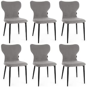 Tonalidade: Cinza | Altura: 82 | Produto: Cadeira Estofada Jacobsen | Largura: 50 | Material da Estrutura: Metal | Cor: Cinza | Peso do Produto: 5 | Fabricante: Magazine Decor | Cômodo Indicado: Cozinhas | Acompanha Braço: Não | Necessita Montagem: Sim | batteries_required: Não | included_components: 6 Cadeiras | is_fragile: Não | part_number: 1 | number_of_boxes: 2 | model_number: 1 | item_package_weight: 5 | bullet_point#0: Seu revestimento em tecido veludo adiciona um toque de requinte e suavidade, tornando qualquer espaço mais sofisticado e convidativo. | bullet_point#1: O encosto curvado foi cuidadosamente projetado para se adaptar ergonomicamente ao corpo, garantindo maior suporte e conforto mesmo durante longos períodos de uso. | bullet_point#2: Sua estrutura em metal confere resistência e durabilidade, garantindo estabilidade e segurança no dia a dia. Seja para refeições, reuniões ou momentos de lazer, a Cadeira Jacobsen é a peça ideal para transformar qualquer ambiente com requinte e sofisticação. | number_of_items: 6 | Certificação de teste externa: Não | Dimensões do item P x L x A: 82x50x45