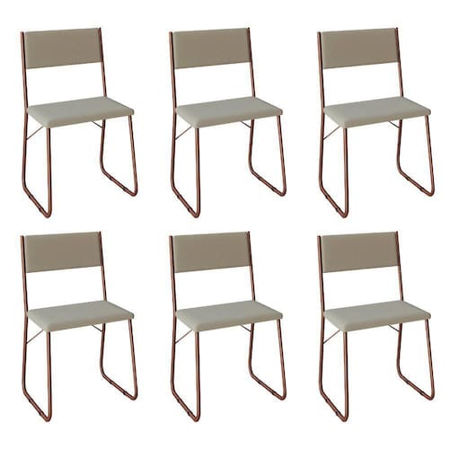 Kit 6 Cadeiras De Jantar Estofadas Angra - Cobre E Bege - Cor: Bege