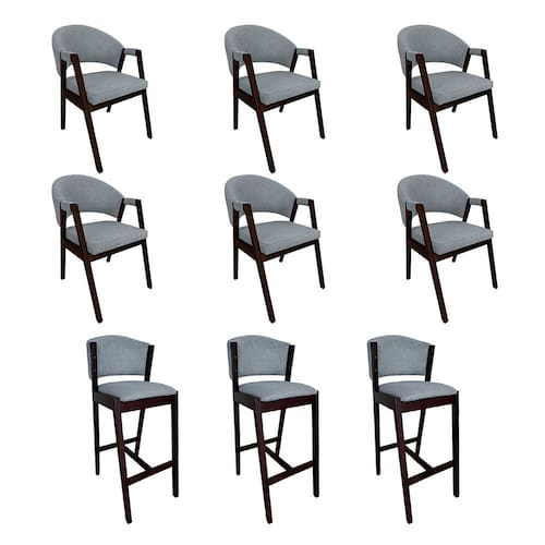 Tipo: Cadeira Modelo: Helen Tecido: Cinza Cor do Tecido: Cinza Cor da Base: Castanho Base em Madeira Maciça