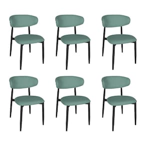 AS IMAGENS SÃO MERAMENTE ILUSTRATIVAS E PODEM SOFRER VARIAÇÕES DE COR E PEQUENOS DETALHES DE ACORDO COM O SEU MONITOR, ILUMINAÇÃO DO AMBIENTE E ATÉ MESMO A SUA PERCEPÇÃO 6 Cadeiras de Jantar Lucy Estrutura AÃo Carbono Laminado Preto com Estofado Linho Verde