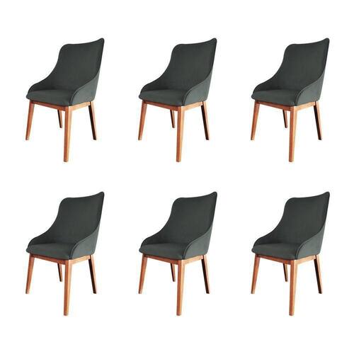 Kit 6 Cadeiras De Jantar Luxo Estofada Elisa Anatômica Veludo Cinza Base Madeira Maciça Mel