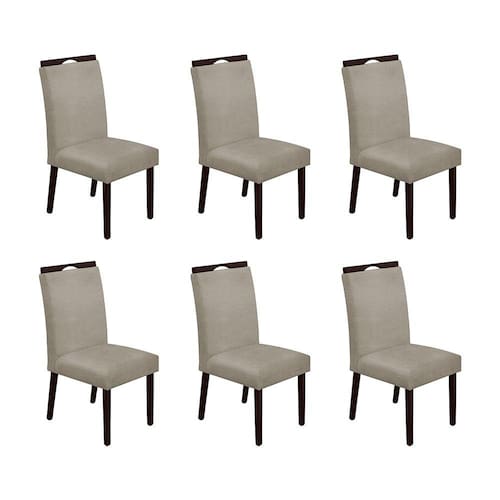 Kit 6 Cadeiras de Jantar Madeira Maciça Castanho Premium Heloísa Linho Bege