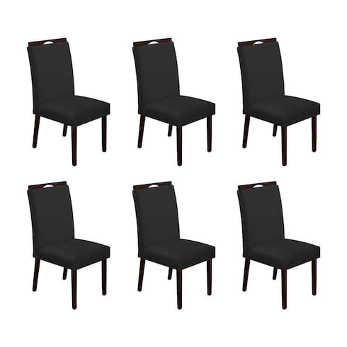 AS IMAGENS SÃO MERAMENTE ILUSTRATIVAS E PODEM SOFRER VARIAÇÕES DE COR E PEQUENOS DETALHES DE ACORDO COM O SEU MONITOR, ILUMINAÇÃO DO AMBIENTE E ATÉ MESMO A SUA PERCEPÇÃO VISUAL.Kit 6 Cadeiras de Jantar Madeira MaciÃa Castanho Premium HeloÃsa Veludo Preto