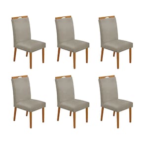 Kit 6 Cadeiras de Jantar Madeira Maciça Cerejeira Premium Heloísa Linho Bege