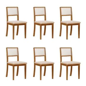 Kit 6 Cadeiras De Jantar Madeira Maciça Mel Encosto Telinha Palha Estofada Veludo Bege Rubi A Cadeira Estofada possui formato anatômico e vai deixar seu ambiente muito mais bonito e sofisticado. Mantendo todo conforto que o móvel precisa ainda conta com enorme elegância. Tipo: Cadeira Modelo: Estofada Cor do Assento: Bege Cor da Base: Castanho Tecido: Veludo Medidas: Altura: 92cm Largura: 46cm Comnto: 56cm ATENÇÃO OBS: BASE DE MADEIRA PODE APRESENTAR DETALHES (RANHURAS) DA PRÓPRIA MADEIRA, O QUE A TORNA ÚNICA E NATURAL, SENDO UMA PEÇA E NÃO UM DEFEITO DE FABRICAÇÃO! IMAGENS MERAMENTE ILUSTRATIVAS REALIZADO EDIÇÃO, PODENDO HAVER UMA PEQUENA VARIAÇÃO DE COR DEPENDENDO DE CADA TELA OU MONITOR.