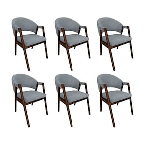 KIT 6 CADEIRAS DE JANTAR MADEIRA MACIÇA NATURAL PREMIUM HELEN LINHO CINZA