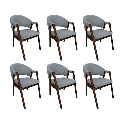 Kit 6 Cadeiras De Jantar Madeira Maciça Natural Premium Helen Linho Cinza