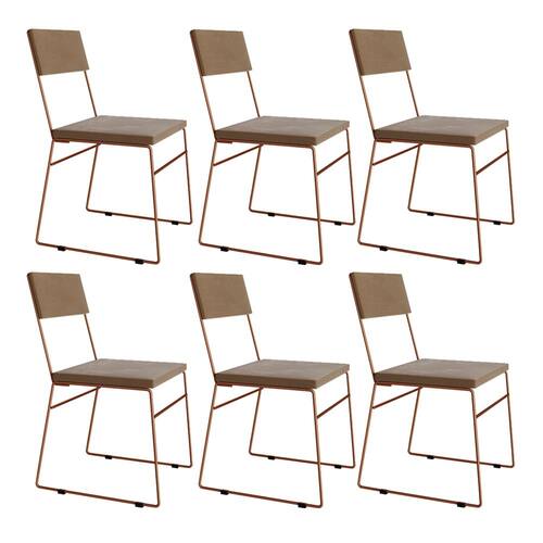 Kit 6 Cadeiras de Jantar Málaga Assento Veludo Marrom Base Cobre