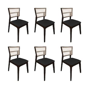 Kit 6 Cadeiras de Jantar Manuela em Tela Assento Veludo Preto Base em Madeira Maciça - Castanho