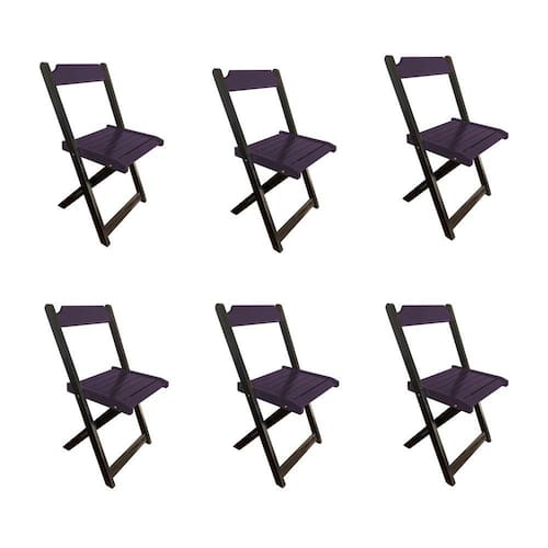 Tipo: Cadeira Modelo: dobrável Base: Madeira maciça Cor do assento: Roxo Quantidade de cadeiras: 6
