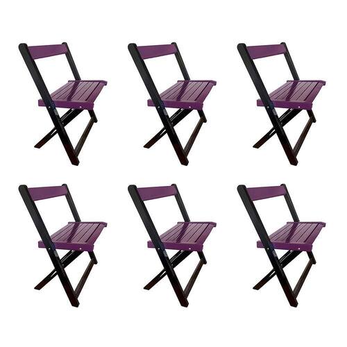 AS IMAGENS SÃO MERAMENTE ILUSTRATIVAS E PODEM SOFRER VARIAÇÕES DE COR E PEQUENOS DETALHES DE ACORDO COM O SEU MONITOR, ILUMINAÇÃO DO AMBIENTE E ATÉ MESMO A SUA PERCEPÇÃO VISUAL.Kit 6 Cadeiras de Madeira DobrÃvel Roxo