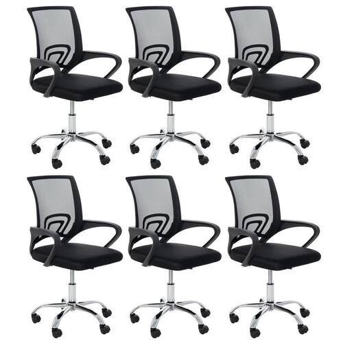 Kit 6 Cadeiras De Rodízios Tok Escritório Home Office Telinha Preto Kit 6 cadeiras de rodízios Tok escritório home office telinha Preto - Características Gerais do Produto: - Material: Tecido, polipropileno e metal - Altura do assento: 40-50 cm (min-max) - Largura do assento: 47 cm - Produto empilhável: Não - Comprimento do assento: 50 cm - Peso suportado: 130 kg - Limpeza e cuidados: Pano úmido sem aplicação de produtos químicos ou abrasivos - Necessita montagem: Sim Acompanha o produto: - 6 cadeiras de rodízios Tok escritório home office telinha Garantia: - 90 dias