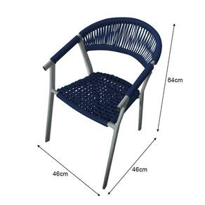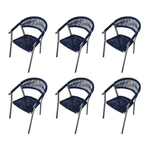 Kit 6 Cadeiras Decorativa Joana Em Corda Náutica E Base Em Alumínio Cinza/ Azul Marinho - Cor: Azul