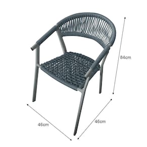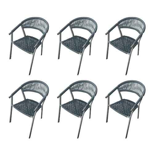 Kit 6 Cadeiras Decorativa Joana em Corda Náutica e Base em Alumínio Cinza/ Cinza