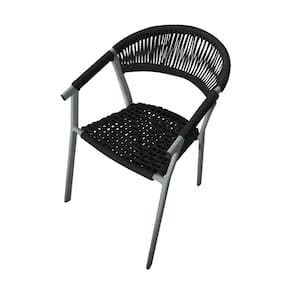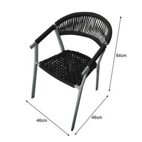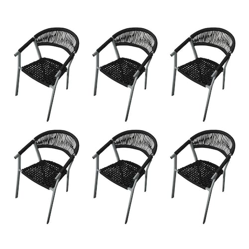 Kit 6 Cadeiras Decorativa Joana em Corda Náutica e Base em Alumínio Cinza/ Preta - Preto