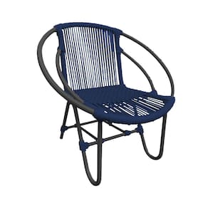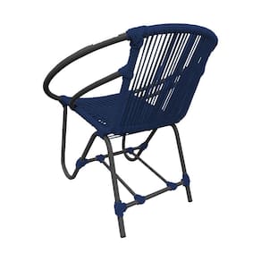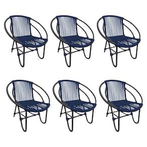 Kit 6 Cadeiras Decorativa Julia em Corda Náutica e Base em Alumínio Preta/ Azul Marinho - Azul Royal