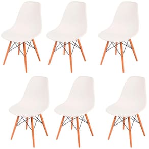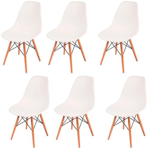 Kit com 6 cadeiras cheias de design e moda sem deixar a simplicidade de lado. A Cadeira Charles Eames é ideal e perfeita para qualquer tipo de ambiente. Possui o acabamento fosco e base em madeira.