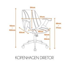 A cadeira Kopenhagen Diretor é toda revestida em couro ecológico e possui sua estrutura em madeira, o que a torna ótima por conta de seu design para salas de reuniões. Ela também possui o mecanismo relax, o que irá manter quem estiver sentado nela mais confortável, além de ser possível ajustar a altura do assento! Altura do Conjunto: 100 cm Ambiente: null Ambiente Principal: Escritório Cor: Preto Informação Complementar: 6x Cadeira Escritório Diretor Giratória Kopenhagen Preto/Marrom Largura: 61 cm Altura: 100 cm Peso: 16 kg Profundidade: 60 cm Necessita Montagem: Sim