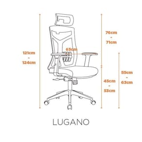 A cadeira Lugano é ergonômica, ajustável e possui apoio de cabeça integrado. Proporciona conforto e suporte, com recursos ajustáveis para encosto, altura do assento e apoios de braço. Seu design cuidadoso garante boa postura, distribuição de peso e prevenção de dores nas costas. Ideal para um ambiente de trabalho produtivo e saudável. Altura do Conjunto: 124 cm Ambiente: null Ambiente Principal: Escritório codigo_ean: 7900288063076 Cor: Preto Cor do Produto: Preto Informação Complementar: 6x Cadeira Escritório Presidente NR17 Office Lugano Preto Largura: 63 cm Altura: 124 cm Peso: 15 kg Profundidade: 63 cm Necessita Montagem: Sim