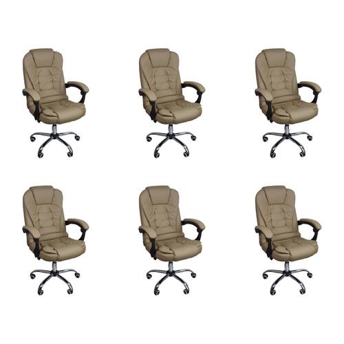 Kit 6 Cadeiras Escritório Presidente Reclinável Ergonômica - Bege