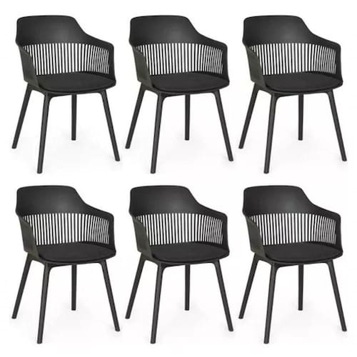 Kit 6 Cadeiras Estofada Jantar Cozinha Marcela - Preto Características Material do assento Cour sintéticoMaterial da base PolipropilenoAltura do assento 46 cmLargura do assento 48 cm Material do encosto PolipropilenoProfundidade do assento 45 cmDistância entre os pés 52 cmPeso suportado 130 kg Limpeza e cuidados Pano úmido sem aplicação de produtos químicos ou abrasivosGarantia de 3 meses por defeitos de fabricação. As imagens são meramente ilustrativas e podem sofrer variações de cor, tamanho e pequenos detalhes de acordo com o seu monitor, iluminação do ambiente e até mesmo a sua percepção visual.