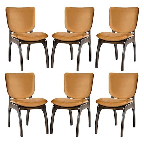 Kit 6 Cadeiras Estofadas em Madeira Maciça Tabaco 44 x 86 Cm Irlanda Suede Terracota L79 - RMI - Marrom
