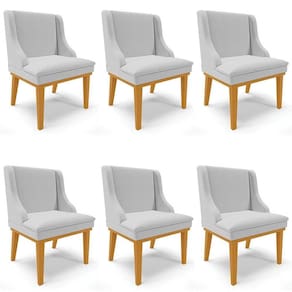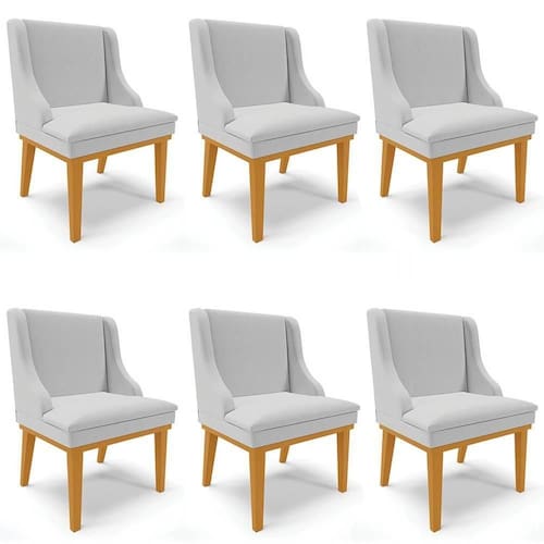 Mais que do que um simples móvel, a cadeira estofada é um artigo decorativo tão importante quanto a mesa de jantar, pois, ela agrega beleza na decoração e chama a atenção de quem vê, por isso, apresentamos o Kit 6 Cadeiras Lia que foi projetado com um design exclusivo que facilita combiná-las com os outros móveis, deixando sua sala de jantar ainda mais bonita. As cadeiras são produzidas com materiais de alta qualidade, para que não se preocupe em desfrutar de bons momentos durante as refeições com sua família e amigos. Essa cadeira de jantar possui estrutura em Madeira Eucalipto de reflorestamento, ecologicamente correta e a base fixa de madeira suporta até 120 kg, sem impacto. A parte estofada é composta por espuma macia com densidade D-23 e o revestimento é em Linho, que para alguns é a representatividade da nobreza! Esse tecido é versátil, durável, macio, conta com propriedades térmicas, antialérgicas e é de fácil limpeza.