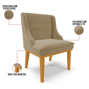Tão importante quanto a Mesa, a Cadeira Estofada é o complemento ideal para seu Conjunto de jantar, pois, ela permite que você faça suas refeições com conforto e segurança. Na hora de escolhermos a cadeira, algumas dúvidas surgem na hora de combiná-la com outros móveis, por isso, o design clean da Cadeira Lia permite que você harmonize facilmente com a decoração do ambiente. Vamos conhecer os detalhes? Ela é produzida com Madeira Eucalipto, a base fica em madeira suporta até 120kg, sem impacto, o conforto vem da espuma macia de densidade D-23 e do revestimento em Suede, tecido resistente, macio ao toque e de fácil limpeza.