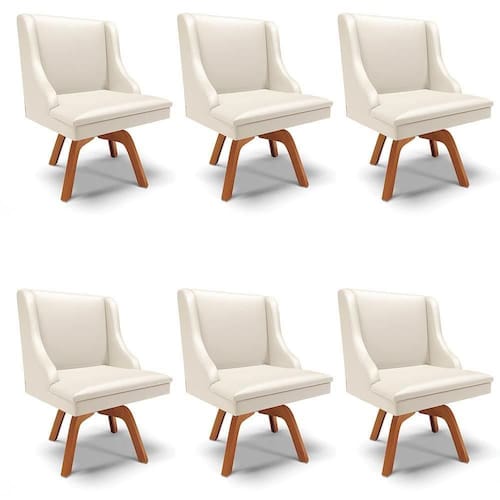 Se você procura pelas Cadeiras perfeitas, acabou de encontrar! Confira o Kit 6 Cadeiras Estofadas para Sala de Jantar Base Giratória de Madeira Lia Sintético Bege, da Ibiza e encante-se!