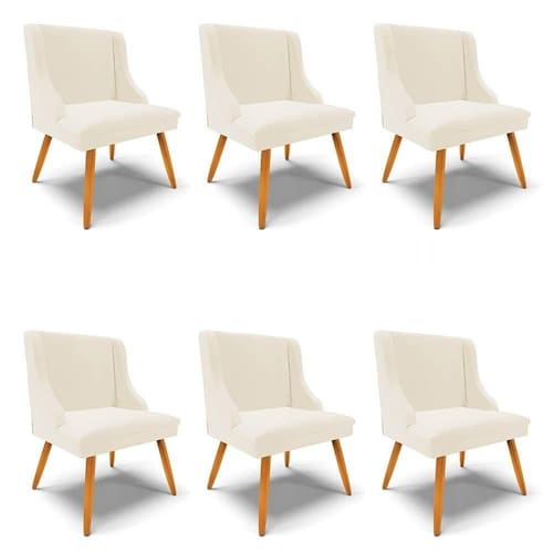 Pensando em renovar os móveis da casa? Vem conferir o Kit 6 Cadeiras Estofadas para Sala de Jantar Pés Palito Lia Veludo Bege, da Ibiza e encante-se!
