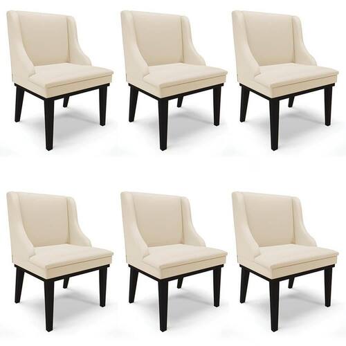 Deixe sua Sala de Jantar com o requinte e sofisticação que ela merece! Conheça o Kit 6 Cadeiras Estofadas Sala de Jantar Base Fixa de Madeira Preto Lia Sintético Bege, da Ibiza e surpreenda-se!