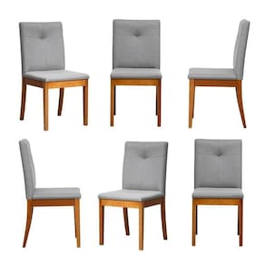 A Cadeira de jantar Tiê Maxx, possui estrutura em madeira maciça de reflorestamento, assento e encosto estofados. As formas puras desta cadeira de jantar ressaltam o detalhe da costura do encosto. O visual clean desta cadeira a torna uma peça ideal para todos os estilos de salas de jantar. Altura do Conjunto: 92.5 cm Ambiente: null Ambiente Principal: Sala de Jantar Cor: Amêndoa/Cinza Informação Complementar: 6x Cadeira Estofada Tiê Maxx Amêndoa/Cinza Largura: 45 cm Altura: 92,5 cm Peso: 7 kg Profundidade: 54 cm Necessita Montagem: Sim