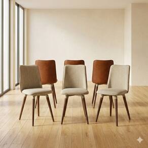 Design moderno e acabamento de alto padrão, o Kit 6 Cadeiras Dakota Giratória é ideal para quem busca sofisticação aliada à funcionalidade. O encosto anatômico em MDF com espuma D14 e o assento com espuma D23 oferecem conforto ergonômico e durabilidade. Seu revestimento em tecido bouclé e courino proporciona um toque elegante e aconchegante ao visual.