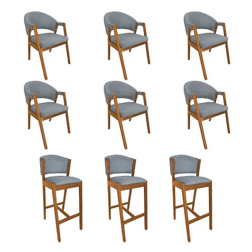 Características da Banqueta Tipo: Banqueta Modelo: Ana Tecido: Linho Cor do Tecido: Cinza Cor da Base: Cerejeira Base em Madeira Maciça
