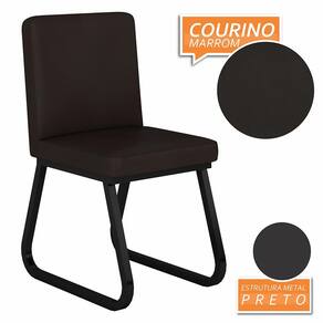 Detalhes Técnicos das Cadeiras - Assento e Encosto Tapeçados, Estofados e Fixos - Assento: D16 - Encosto: D14 - Estrutura: Metálica - Tonalidade: Preto Fosco/Corino Marrom - Medida de cada Cadeira: Altura: 86cm x Largura: 44cm x Profundidade: 56,5cm - Peso Suportado da Cadeira: 90KG - Facilidade da Montagem: Média