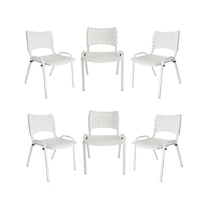 Kit 6 Cadeiras Iso Para Escola Escritório Comércio Branca Base Branca