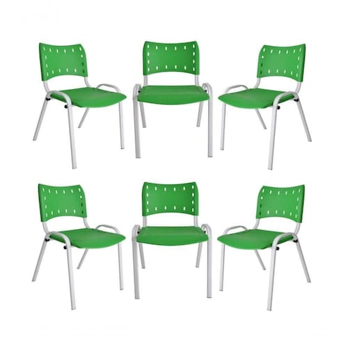 Kit 6 Cadeiras Iso Para Escola Escritório Comércio Verde Base Branca