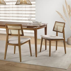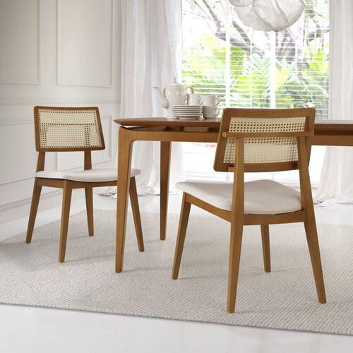 Além disso, a cadeira possui assento anatômico estofado com espuma D28 padrão Inmetro e revestimento em tecido tipo linho claro, proporcionando conforto durante o uso. A estrutura é feita em madeira maciça de Tauari, com travas coladas e parafusadas, garantindo a resistência necessária para durar por muitos anos.