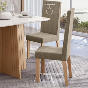 O Kit com 6 Cadeiras Nice é ideal para quem deseja compor ambientes com elegância e funcionalidade. Com design moderno e espaldar alto, essas cadeiras oferecem conforto e presença visual, sendo perfeitas para salas de jantar, espaços gourmet ou ambientes integrados.O revestimento em veludo suede proporciona um toque macio e sofisticado, enquanto a estrutura em MDF com pés equipados com sapatilhas plásticas garante estabilidade, durabilidade e proteção ao piso.