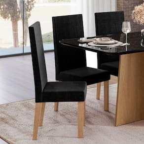 O Kit com 6 Cadeiras Nice é a escolha ideal para quem deseja compor ambientes elegantes e acolhedores com praticidade. Com design moderno e espaldar alto, essas cadeiras se destacam pelo estofado em veludo Suede, que proporciona um toque macio e visual sofisticado.A estrutura é composta por pés em MDF de alta resistência, equipados com sapatilhas plásticas que protegem o piso e garantem maior estabilidade. Ideal para salas de jantar, cozinhas planejadas ou espaços gourmet, unindo beleza, conforto e durabilidade.