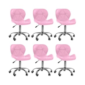 A cadeira conta com uma base giratória cromada e rodinhas. Isso facilita consideravelmente a sua locomoção no ambiente de trabalho.