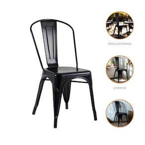 Adicione um toque de estilo industrial ao seu ambiente com a Cadeira Tolix Preta! Compacta, resistente e cheia de personalidade, é perfeita para cozinhas, mesas auxiliares, espaços gourmet e ambientes comerciais.