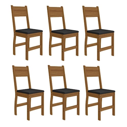 Com qualidade Poliman, o melhor em design, conforto e durabilidade. Acabamento: Fosco Acabamento da Estrutura: Pintura Almofada do assento: Fixa Altura do assento até o chão: 47.0000 Altura dos Pés: 45 cm Altura Máxima dos Pés: 45.0000 Ambiente Principal: Cozinha codigo_ean: 7900288118660 Complexidade da Montagem: Baixa: pode ser montado por uma pessoa sozinha Cor: Carvalho/Preto Cor do Produto: Carvalho/Preto Dimensões do assento: C.38xL.40xE.1,5cm Dobrável: Não Enchimento do Assento: Espuma D-10 Escala de Brilho: Fosco Estrutura do Assento: MDP Estrutura do Encosto: MDP Giratória: Não Informações Complementares: Assento com espuma revestida em material sintético de alta resistência, travas, sapatas. As imagens são meramente ilustrativas. As cores podem variar dependendo da tela ou dispositivo de visualização. Itens Inclusos: 6 Cadeiras, Kit de Ferragens e Manual de Montagem. Manual de Montagem e Instalação: https://product-hub-prd.madeiramadeira.com.br/983049/documents/c2b88488-909e-4cdf-b584-36ab96132699280381349317440242690448.pdf Marca: Poliman Móveis Material Principal: MDF Necessita Montagem: Sim Origem do Produto: Nacional Peso: 35,4 kg Possui Apoio para Braços: Não Possui Apoio Para os Pés: Não Possui Assento/Encosto Estofados: Possui Somente o Assento Estofado Possui Espaldar: Não Possui Rodízio: Não Quantidade de Itens: 6 Recomendações de Uso, Manutenção e Limpeza: Utilizar uma flanela seca ou umedecida. Não usar produtos abrasivos. Revestimento do Assento: Courvin Sistema de Montagem: Parafusos, cantoneiras, pregos, sapatas, junção. Tipo de Assento: Fixo Tipo de Encosto: Fixo