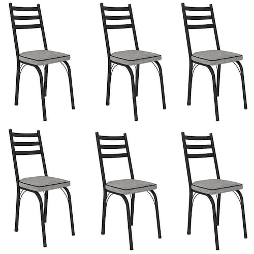 Kit 6 Cadeiras Para Cozinha Tubular D-13 Nara De Aço Preto/grafiato