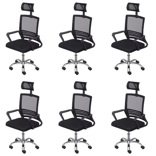 A cadeira office Lyon alta possui estrutura e encosto em Nylon com tela mesh , base giratória cromada com rodas em PU que não danificam o piso. Ela proporciona conforto e praticidade ao usuário é Ideal para aperfeiçoar e decorar seu escritório, sala de reunião e home office. Altura do Conjunto: 121 cm Ambiente: null Ambiente Principal: Escritório Cor: Preto Informação Complementar: 6x Cadeira Para Escritório Presidente Lyon Alta em Tela Mesh Preto Largura: 57,5 cm Altura: 121 cm Peso: 9 kg Profundidade: 51 cm Necessita Montagem: Sim