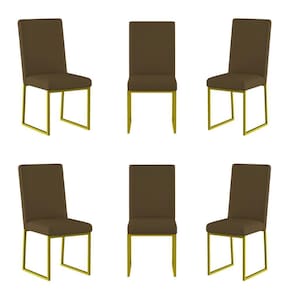 Você receberá 3 volumes, ou seja, seis Cadeiras Estofadas para Mesa de Jantar com Base Industrial Dourado.