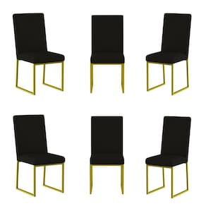 Você receberá 3 volumes, ou seja, seis Cadeiras Estofadas para Mesa de Jantar com Base Industrial Dourado.