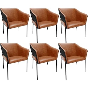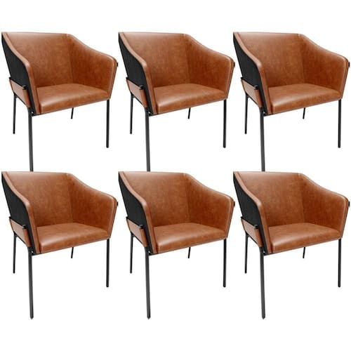 Que tal inovar na sala de jantar e apostar em um modelo de cadeira de jantar estilo poltrona?! Isso mesmo, com o Kit 06 Cadeiras Para Sala de Jantar Estar Living Olívia L02 Couríssimo Camel Preto, da Lyam Decor, você pode.