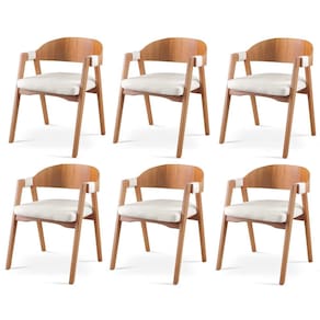A Cadeira Luna se destaca por seu encosto curvo produzido em lâmina de madeira com acabamento refinado e de alta qualidade. Seu assento acolchoado com espuma D28 oferece um conforto excepcional para suas refeições. A madeira utilizada é seca e tratada, garantindo maior durabilidade e resistência. Transforme seu ambiente com o conforto e design contemporâneo da Cadeira Luna! Almofada do assento: Fixa Altura do assento até o chão: 48 cm Ambiente Principal: Sala de Jantar codigo_ean: 7900288273758 Cor: Nude/Mel Cor do Produto: Nude/Mel Dimensões do assento: 60 Dobrável: Não Enchimento do Assento: Espuma D-28 Estrutura do Encosto: Madeira Giratória: Não Itens Inclusos: 6 Cadeiras Linha ou Coleção: Luna Marca: Zurc Decor Material dos Pés: Madeira Material Principal: Madeira Necessita Montagem: Não Origem do Produto: Nacional Peso: 90 kg Possui Apoio para Braços: Sim Possui Apoio Para os Pés: Não Possui Assento/Encosto Estofados: Possui Somente o Assento Estofado Possui Espaldar: Sim Possui Rodízio: Não Quantidade de Itens: 6 Recomendações de Uso, Manutenção e Limpeza: Utilizar aspirador de pó, escova com cerdas macias ou limpeza a seco. Não utilizar produtos químicos, abrasivos ou limpeza a vapor. Evitar exposição prolongada ao sol. Revestimento do Assento: Linho Tipo de Assento: Fixo Tipo de Encosto: Fixo Marca: Não Informado